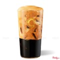 Cà phê Espresso đậm đà thêm hương Đào và Topping Đào miếng mọng nước.