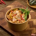 Bánh Tráng Trộn Thịt Xào Mắm Ruốc nổi bật với phần thịt xào mắm ruốc thơm lừng, đậm đà vị mặn ngọt đặc trưng, được chế biến tỉ mỉ để dậy mùi hấp dẫn. Kết hợp cùng bánh tráng dẻo phơi sương, xoài bào sợi, hành phi, đậu phộng và rau răm, mang đến hương
