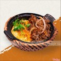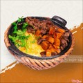 Món ăn gồm có : 1 niêu cơm cháy 2 mặt, 1 phần bò rim tiêu đen, kim chi ăn kèm , cốc canh rau thay đổi theo ngày