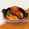 Món ăn gồm có : 1 niêu cơm cháy, 1 tỏi đùi gà sốt bbq, kim chi ăn kèm , cốc canh rau thay đổi theo ngày