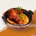 Món ăn gồm có : 1 niêu cơm cháy 2 mặt, 1 tỏi đùi gà sốt bbq kiểu hàn, kim chi ăn kèm , cốc canh rau thay đổi theo ngày