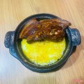 Món ăn gồm có : 1 niêu cơm cháy 2 mặt, 2 khúc cá basa kho, kim chi ăn kèm , cốc canh rau thay đổi theo ngày