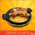 Món ăn gồm có : 1 niêu cơm cháy 2 mặt, 1 tỏi đùi gà om nấm đùi gaf, kim chi ăn kèm , cốc canh rau thay đổi theo ngày